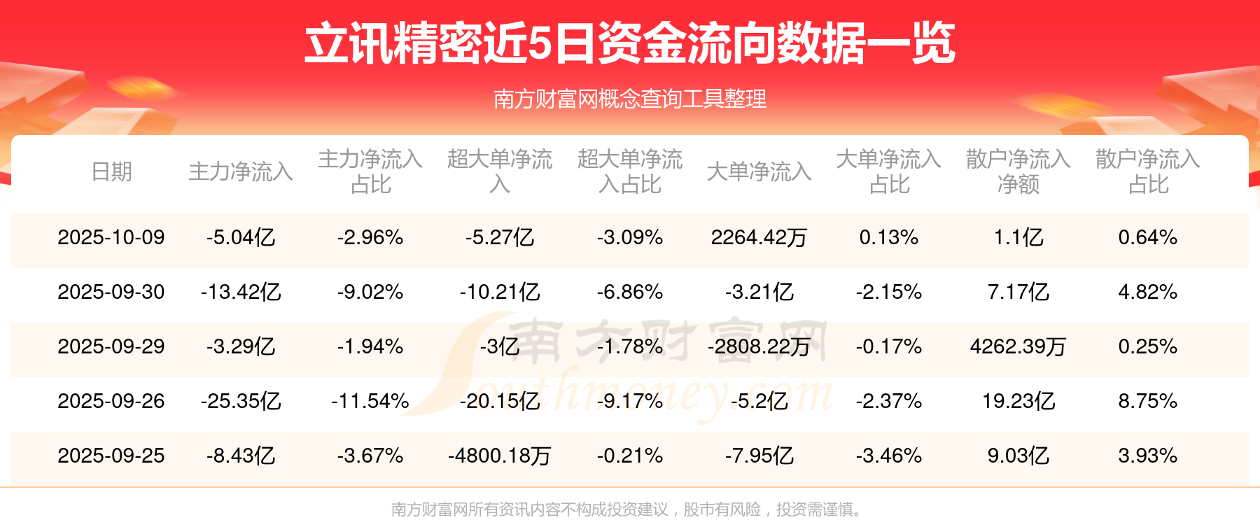 10月9日該股主力資金凈流出5.04億元,超大單資金凈流出5.27億元,大單資金凈流入2264.42萬元,中單資金凈流入3.94億元,散戶資金凈流入1.1億元。