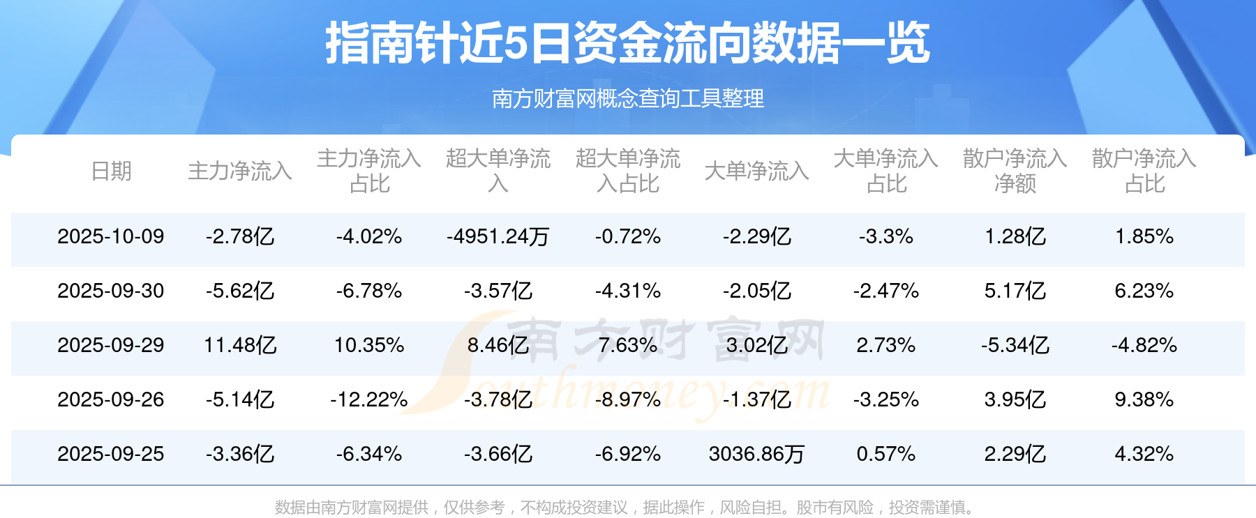 近5日資金流向一覽見下表: