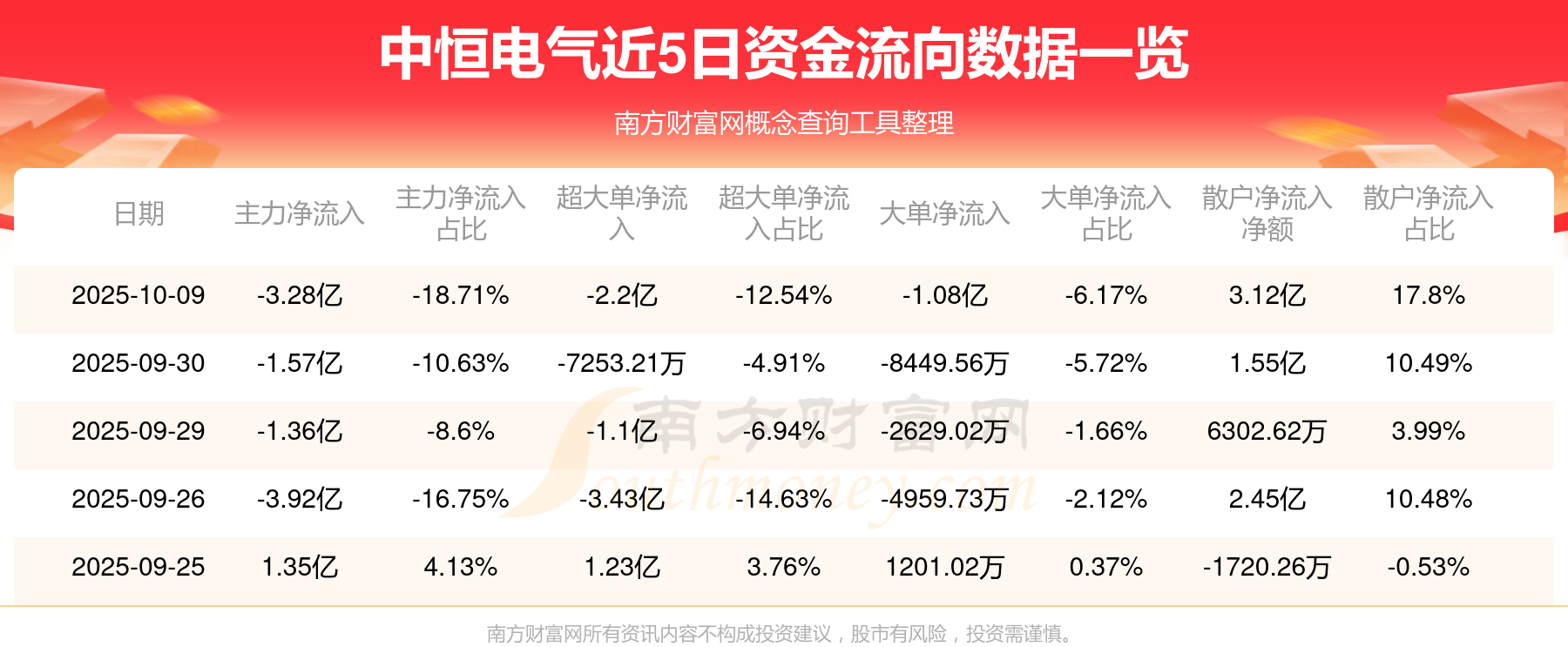 10月9日該股主力凈流出3.28億元,超大單凈流出2.2億元,大單凈流出1.08億元,中單凈流入1598.63萬(wàn)元,散戶凈流入3.12億元。