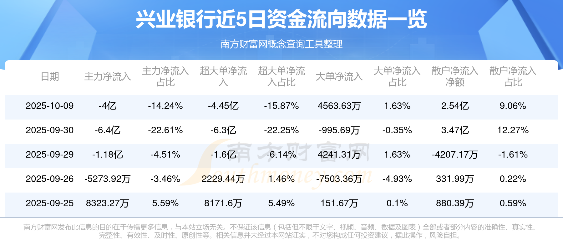 近5日資金流向一覽見下表: