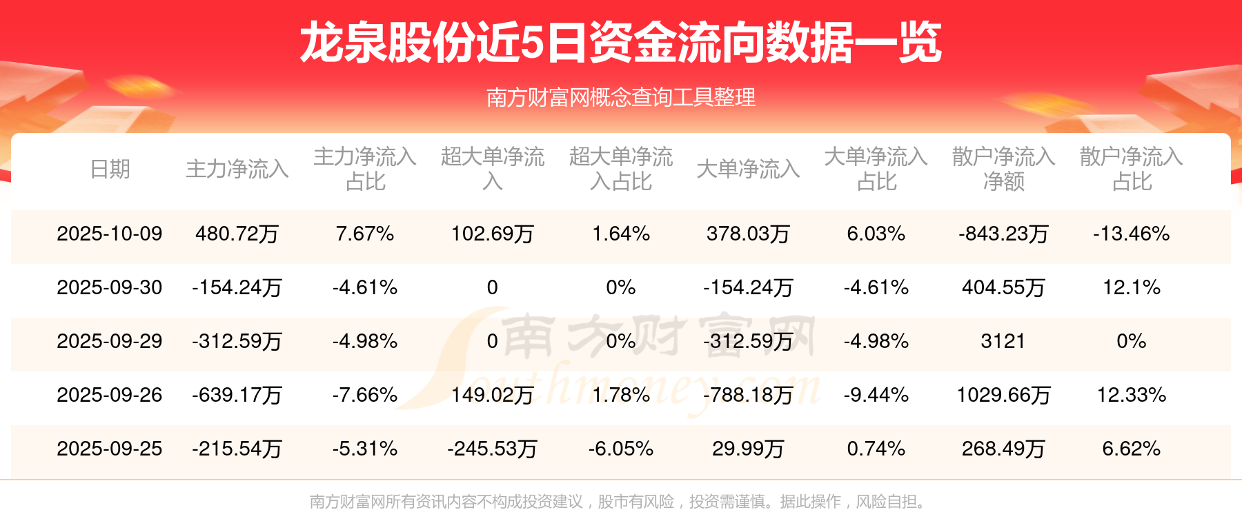 10月9日該股主力凈流入480.72萬(wàn)元,超大單凈流入102.69萬(wàn)元,大單凈流入378.03萬(wàn)元,中單凈流入362.51萬(wàn)元,散戶凈流出843.23萬(wàn)元。