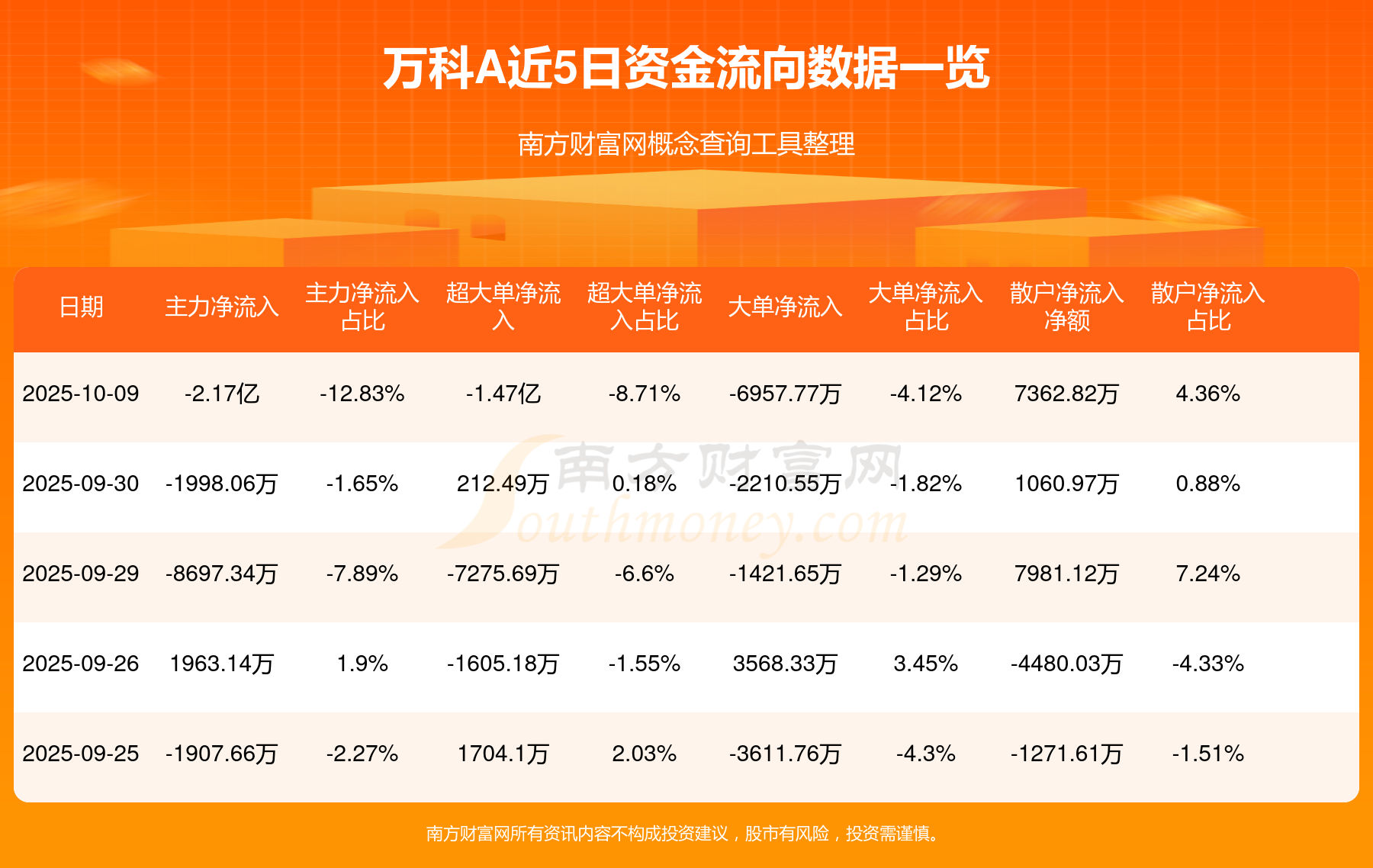 10月9日消息,萬科A資金凈流出2.17億元,超大單資金凈流出1.47億元,換手率1%,成交金額6.58億元。