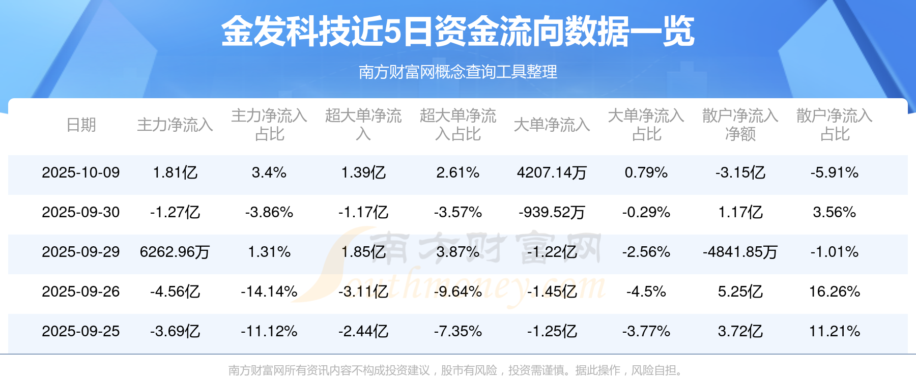 10月9日消息,金發(fā)科技主力凈流入1.81億元,超大單凈流入1.39億元,散戶凈流出3.15億元。