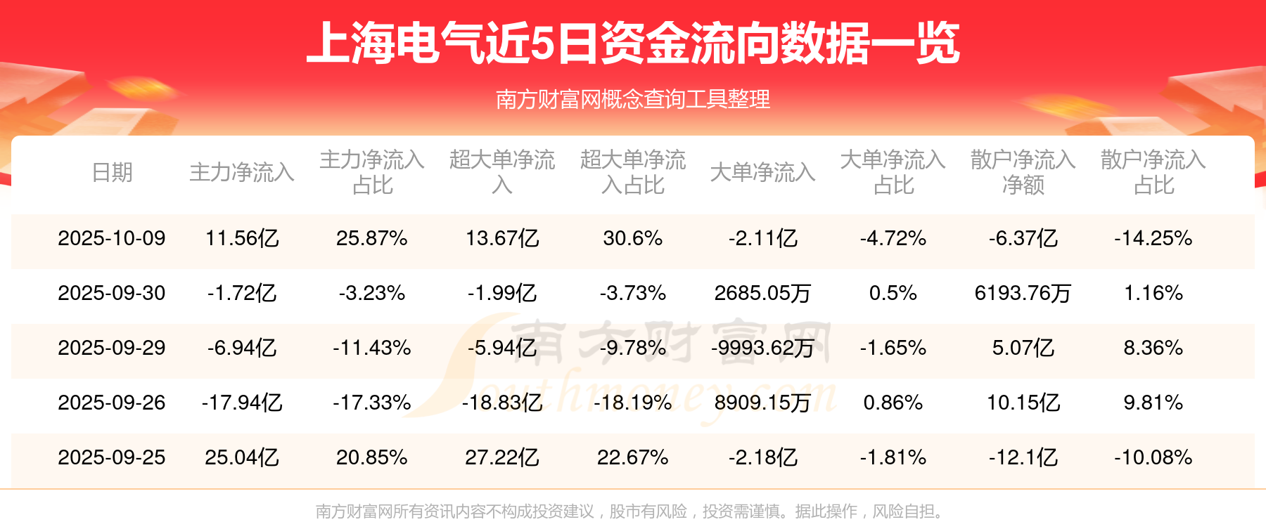 10月9日消息,上海電氣主力凈流入11.56億元,超大單凈流入13.67億元,散戶凈流出6.37億元。