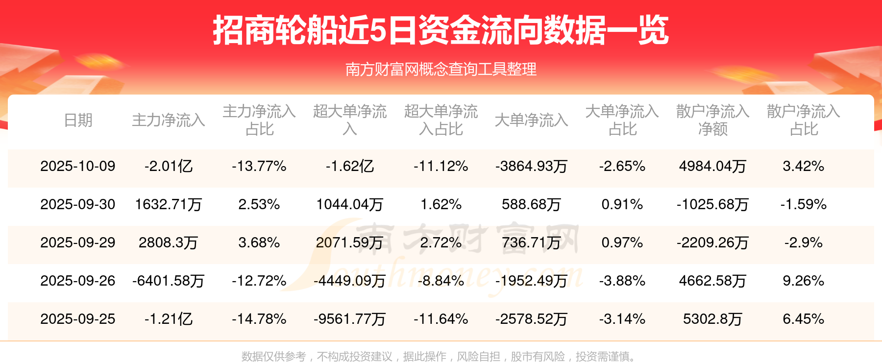 10月9日消息,招商輪船10月9日主力凈流出2.01億元,超大單凈流出1.62億元,大單凈流出3864.93萬元,散戶凈流入4984.04萬元。