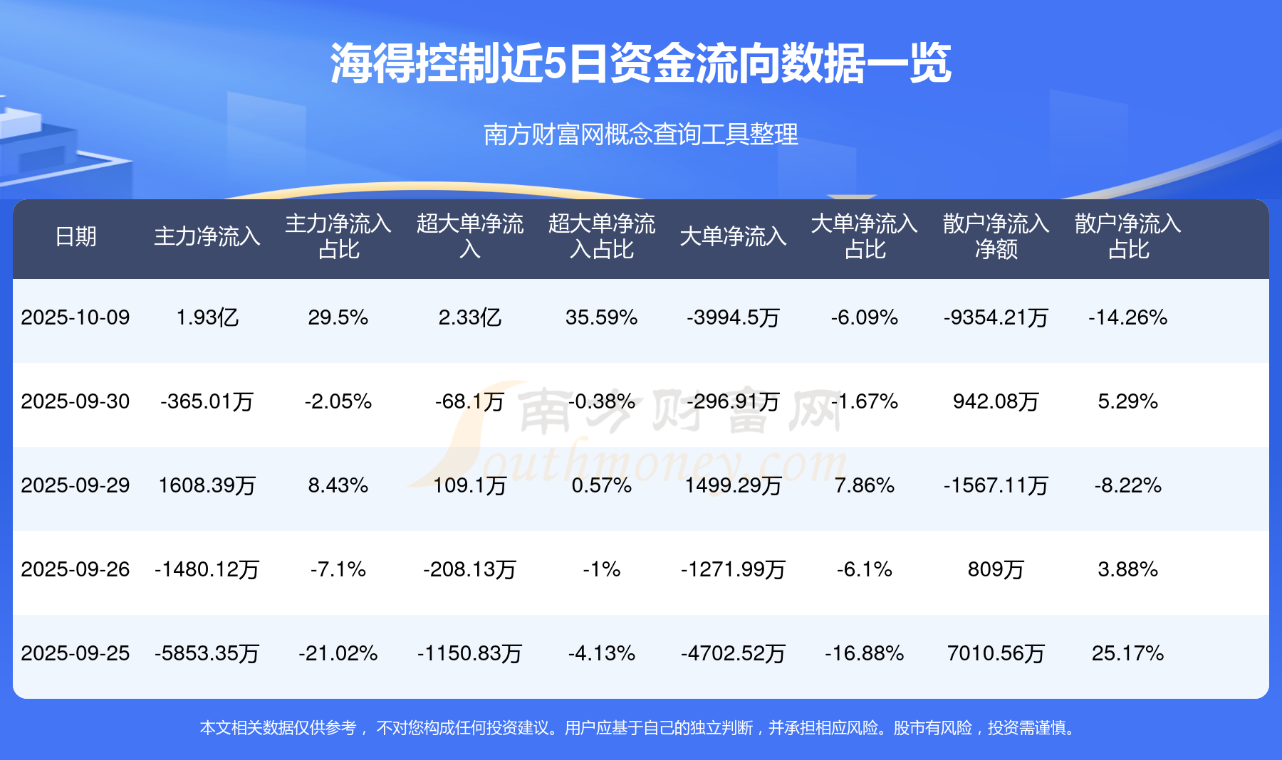 10月9日消息,海得控制主力資金凈流入1.93億元,超大單資金凈流入2.33億元,散戶資金凈流出9354.21萬元。