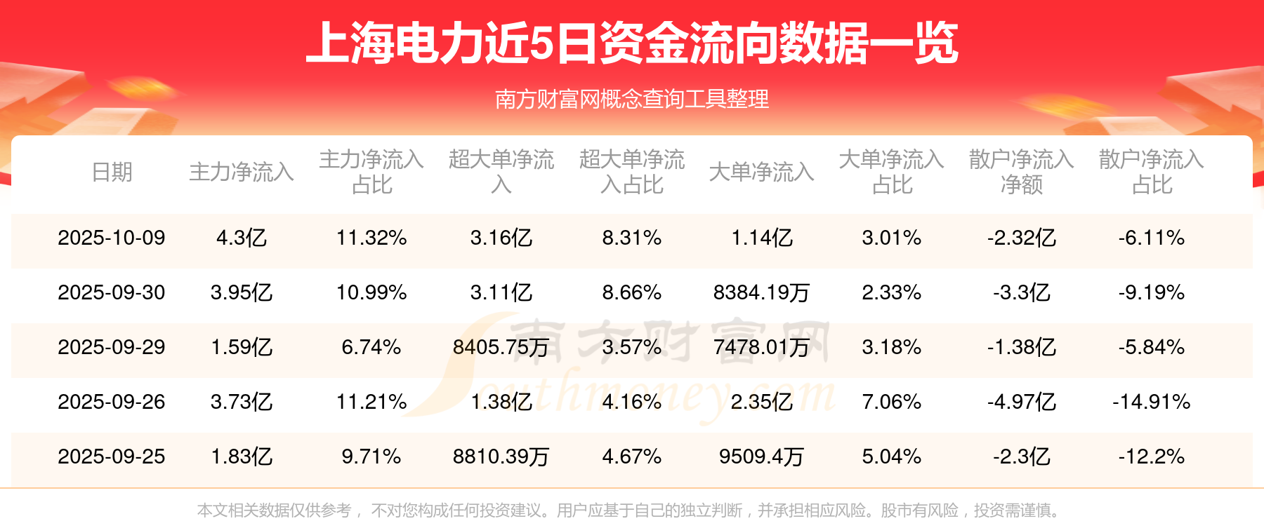 10月9日消息,上海電力主力資金凈流入4.3億元,超大單資金凈流入3.16億元,散戶資金凈流出2.32億元。