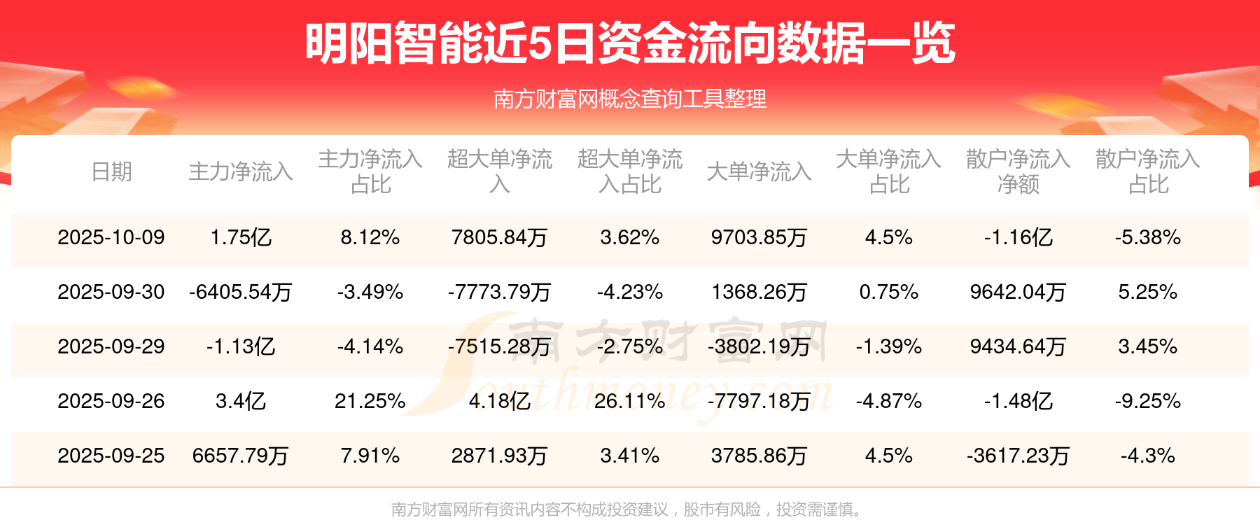 10月9日該股主力凈流入1.75億元,超大單凈流入7805.84萬(wàn)元,大單凈流入9703.85萬(wàn)元,中單凈流出5900.75萬(wàn)元,散戶(hù)凈流出1.16億元。