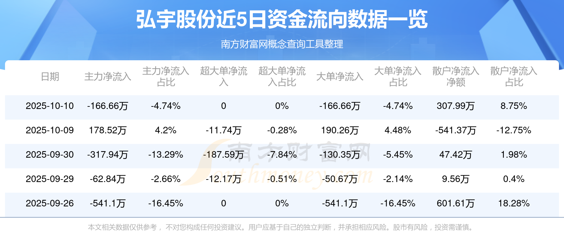 10月10日消息,弘宇股份10月10日主力凈流出166.66萬元,大單凈流出166.66萬元,散戶凈流入307.99萬元。