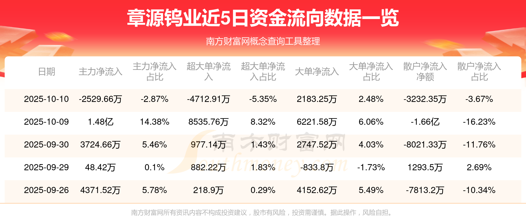近5日資金流向一覽見下表: