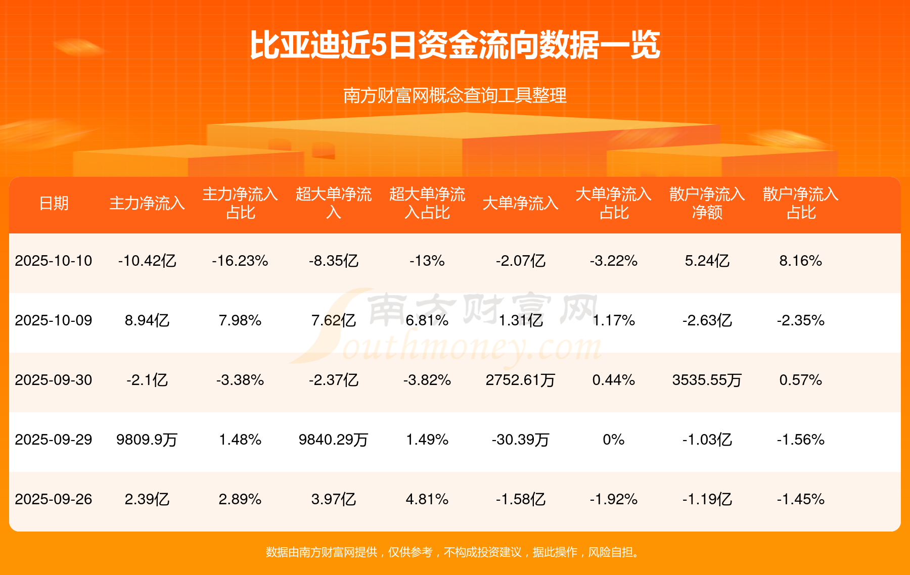10月10日該股主力資金凈流出10.42億元,超大單資金凈流出8.35億元,大單資金凈流出2.07億元,中單資金凈流入5.18億元,散戶資金凈流入5.24億元。