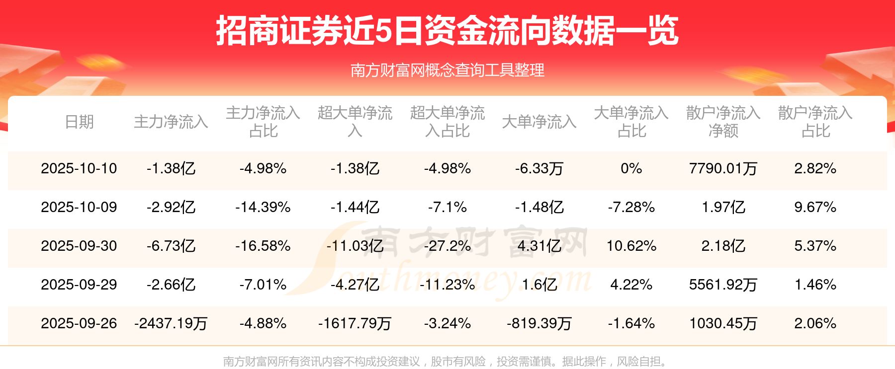 10月10日消息,招商證券資金凈流出1.38億元,超大單凈流出1.38億元,換手率2.14%,成交金額27.65億元。