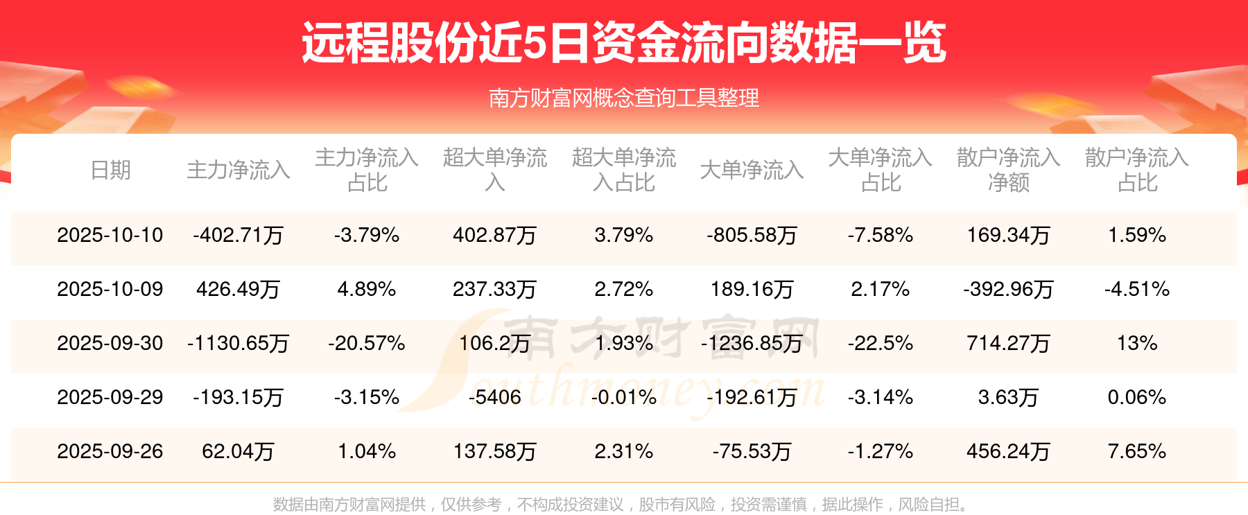 10月10日消息,遠程股份主力凈流出402.71萬元,超大單凈流入402.87萬元,散戶凈流入169.34萬元。