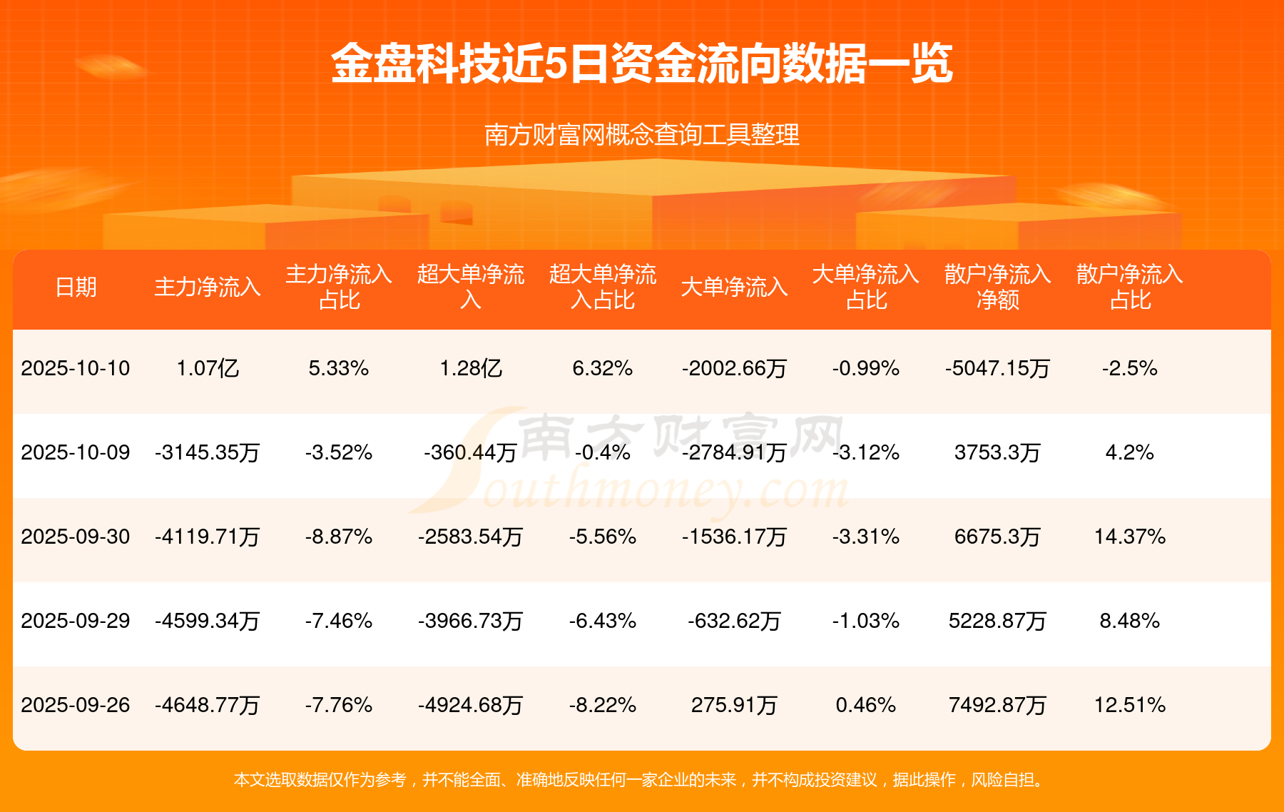 10月10日消息,資金凈流入1.07億元,超大單凈流入1.28億元,成交金額20.19億元。