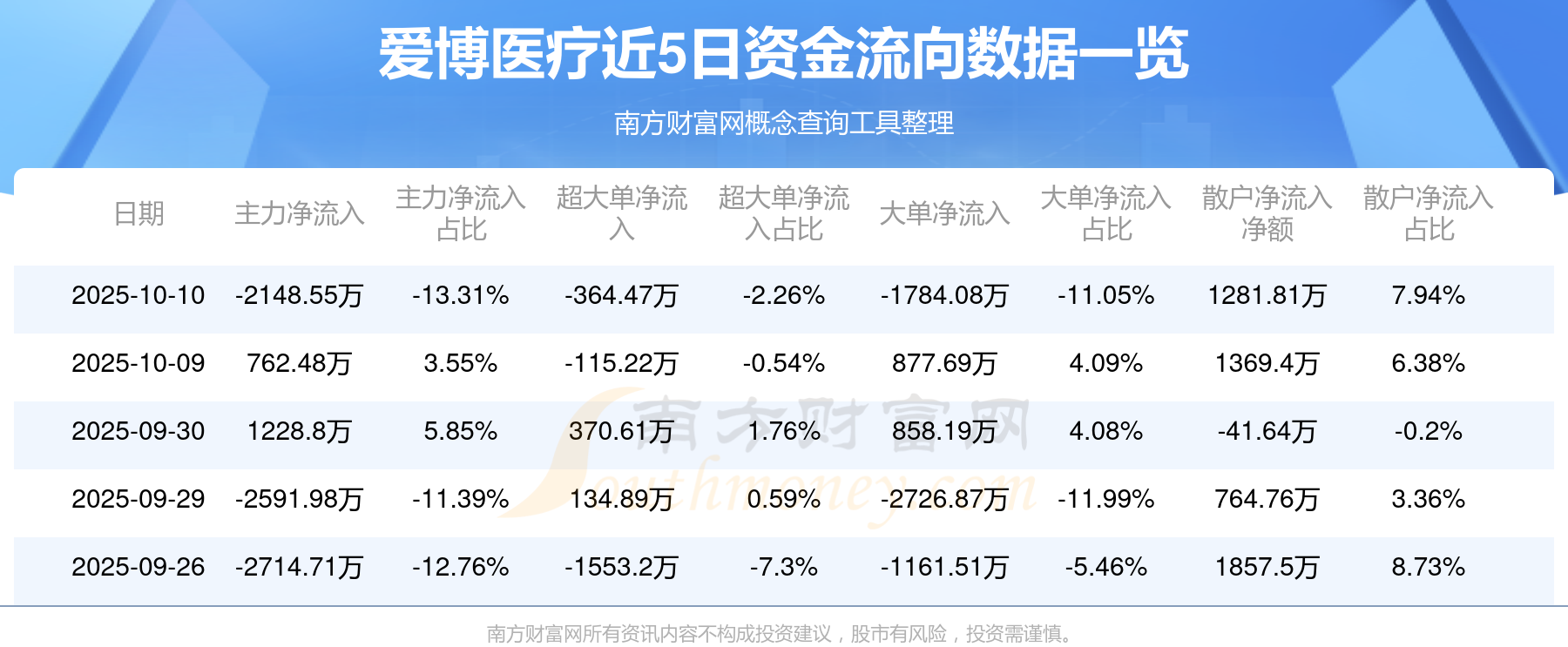 10月10日消息,愛博醫(yī)療資金凈流出2148.55萬元,超大單凈流出364.47萬元,換手率1.16%,成交金額1.61億元。