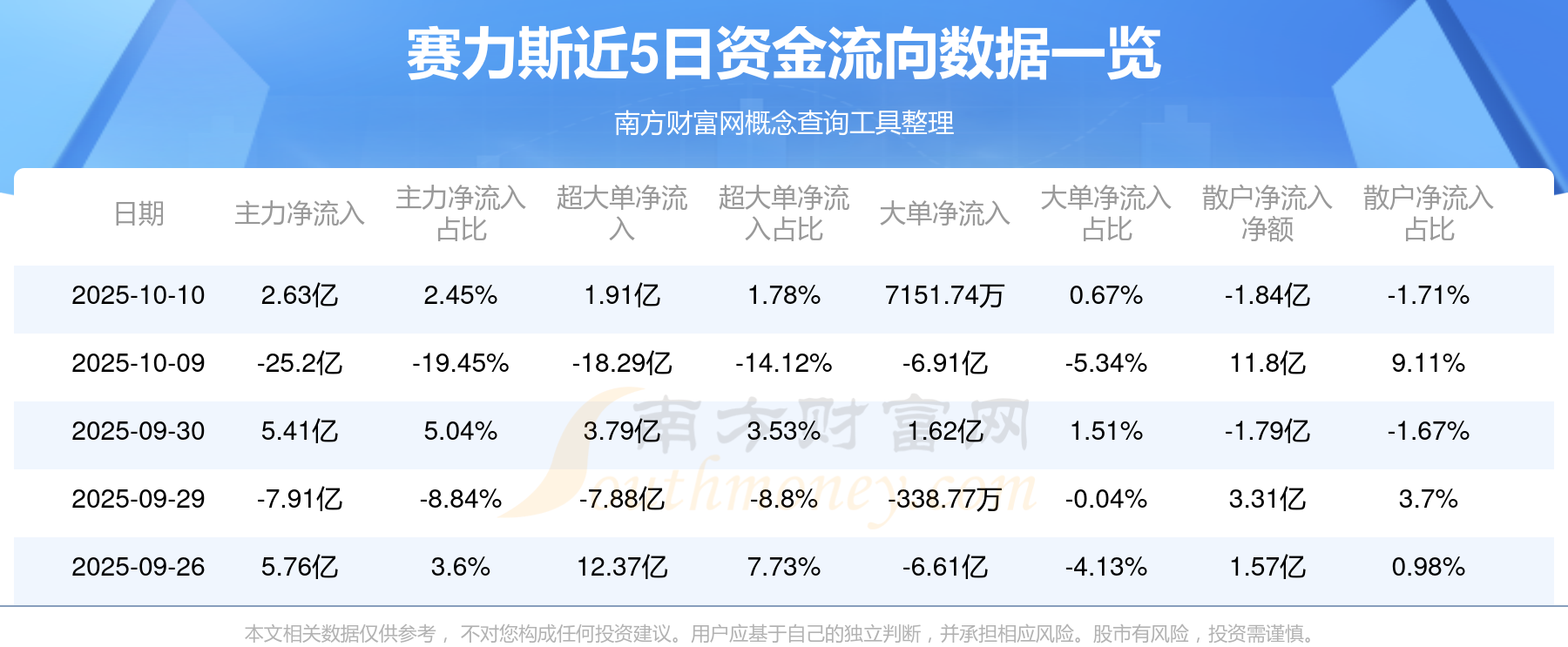10月10日消息,賽力斯10月10日主力資金凈流入2.63億元,超大單資金凈流入1.91億元,大單資金凈流入7151.74萬元,散戶資金凈流出1.84億元。