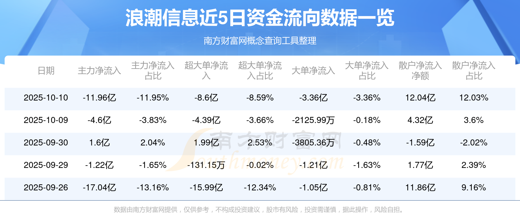 10月10日該股主力凈入-11.96億元,其中資金流入方面:超大單凈入16.4億元,大單凈入25.2億元,中單凈入28.94億元,散戶凈入27.75億元;資金流出方面:超大單凈出25億元,大單凈出28.56億元,中單凈出29.02億元,散戶凈出15.71億元。