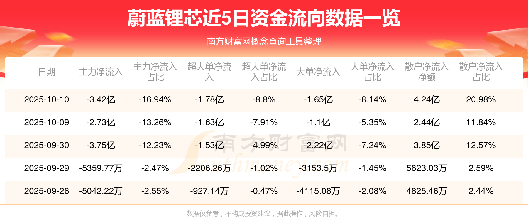 10月10日該股主力資金凈流出3.42億元,超大單資金凈流出1.78億元,大單資金凈流出1.65億元,中單資金凈流出8170.36萬元,散戶資金凈流入4.24億元。