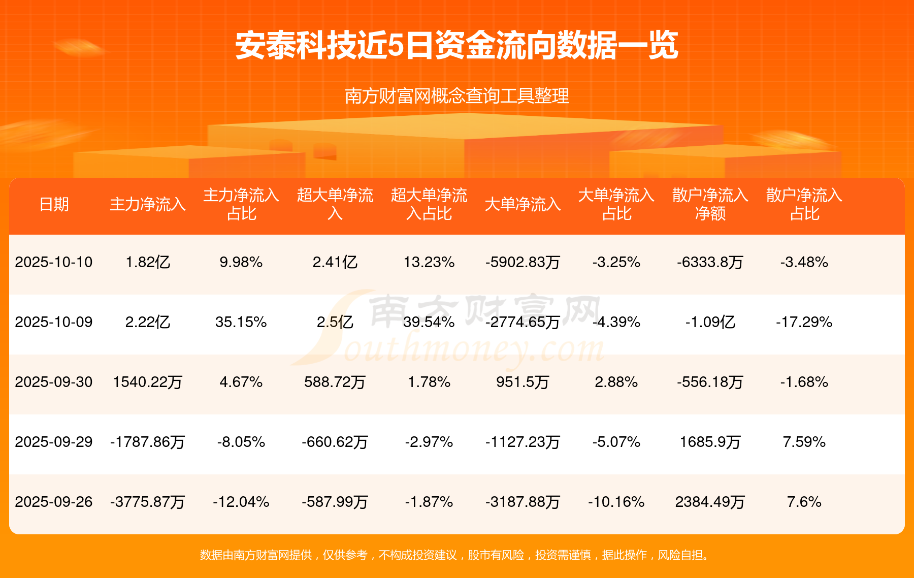 10月10日該股主力凈流入1.82億元,超大單凈流入2.41億元,大單凈流出5902.83萬元,中單凈流出1.18億元,散戶凈流出6333.8萬元。