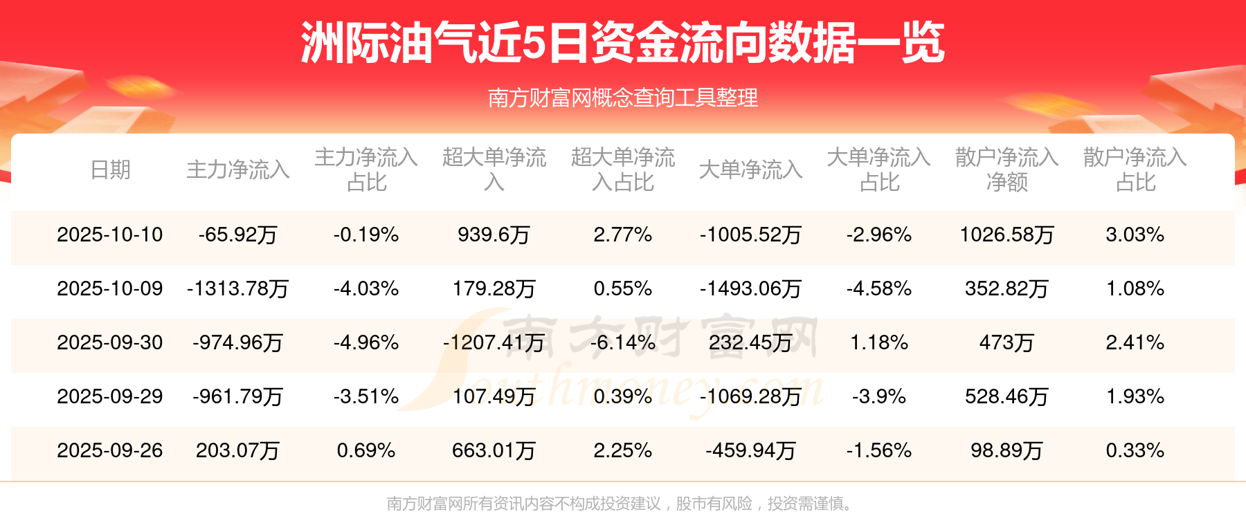10月10日消息,洲際油氣10月10日主力凈流出65.92萬(wàn)元,超大單凈流入939.6萬(wàn)元,大單凈流出1005.52萬(wàn)元,散戶凈流入1026.58萬(wàn)元。