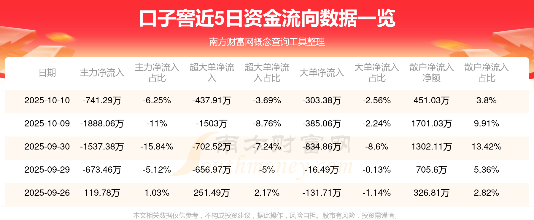 近5日資金流向一覽見下表: