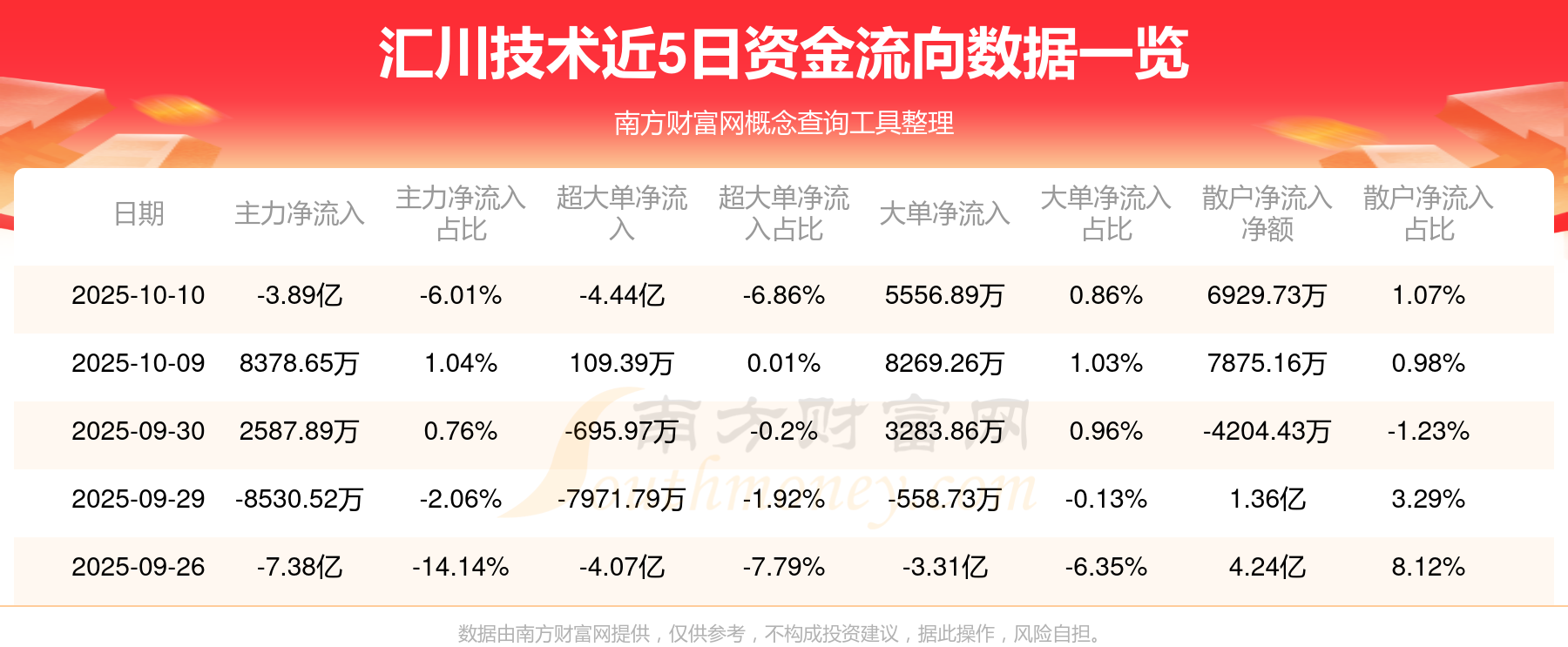 10月10日消息,匯川技術(shù)10月10日主力資金凈流出3.89億元,超大單資金凈流出4.44億元,大單資金凈流入5556.89萬(wàn)元,散戶資金凈流入6929.73萬(wàn)元。
