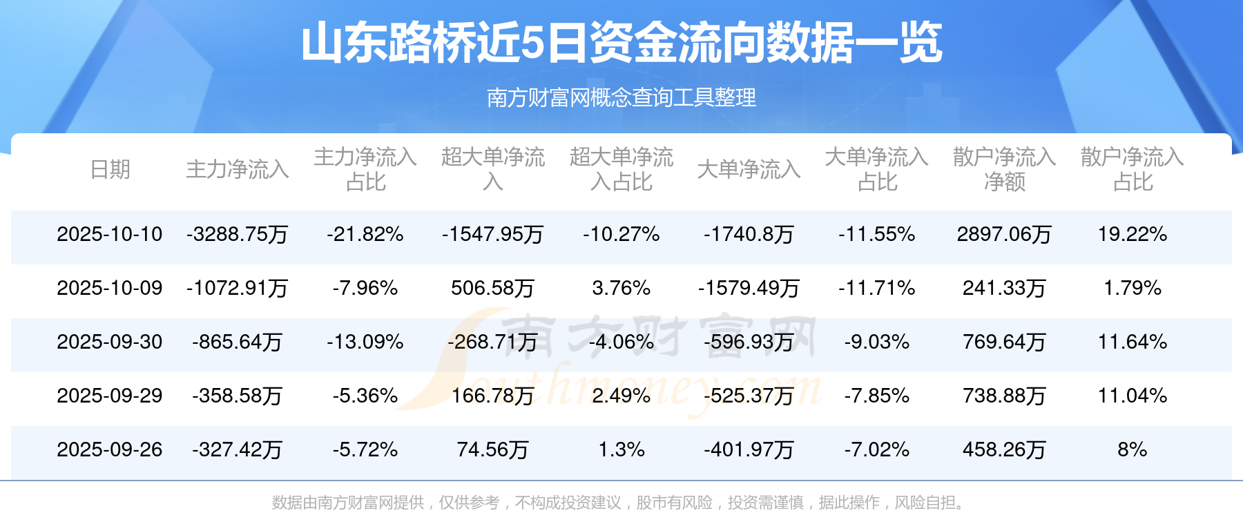 10月10日消息,山東路橋10月10日主力資金凈流出3288.75萬元,超大單資金凈流出1547.95萬元,大單資金凈流出1740.8萬元,散戶資金凈流入2897.06萬元。