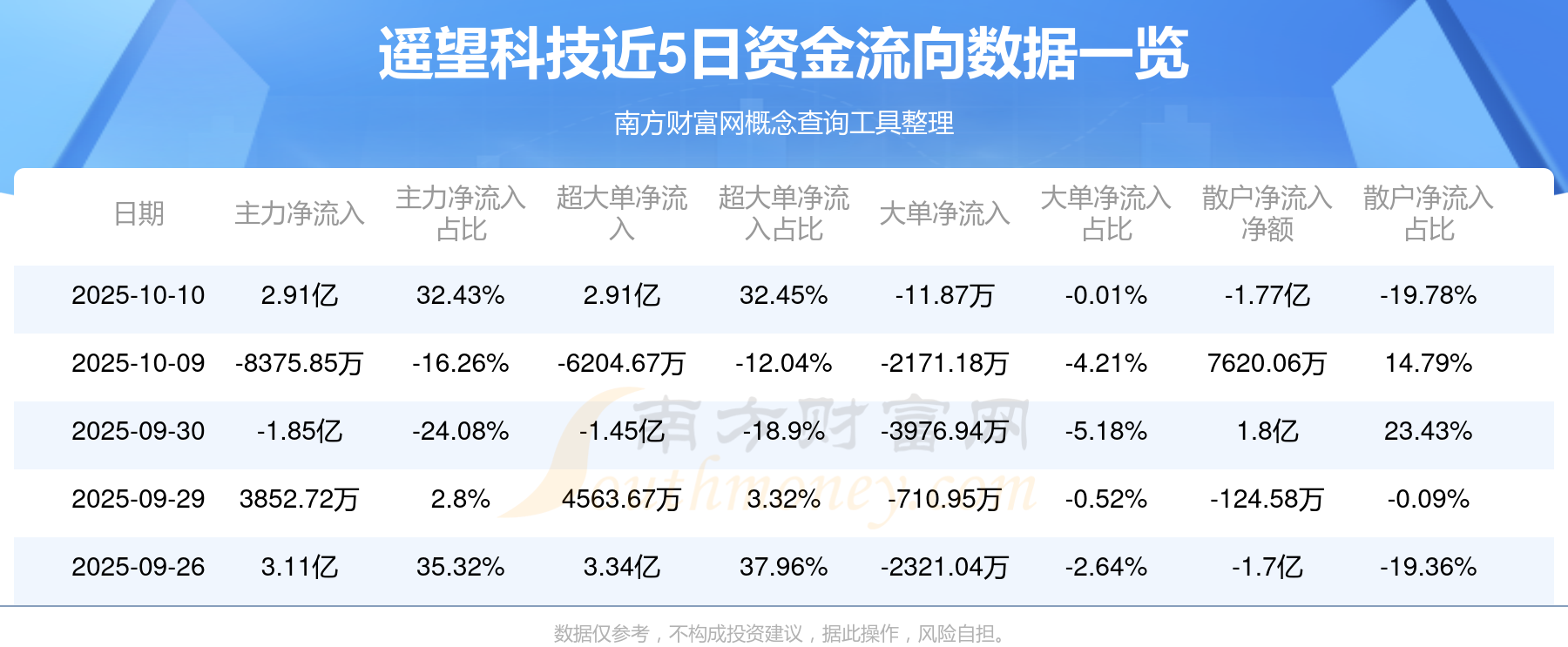 10月10日消息,遙望科技資金凈流入2.91億元,超大單資金凈流入2.91億元,換手率15.01%,成交金額8.97億元。