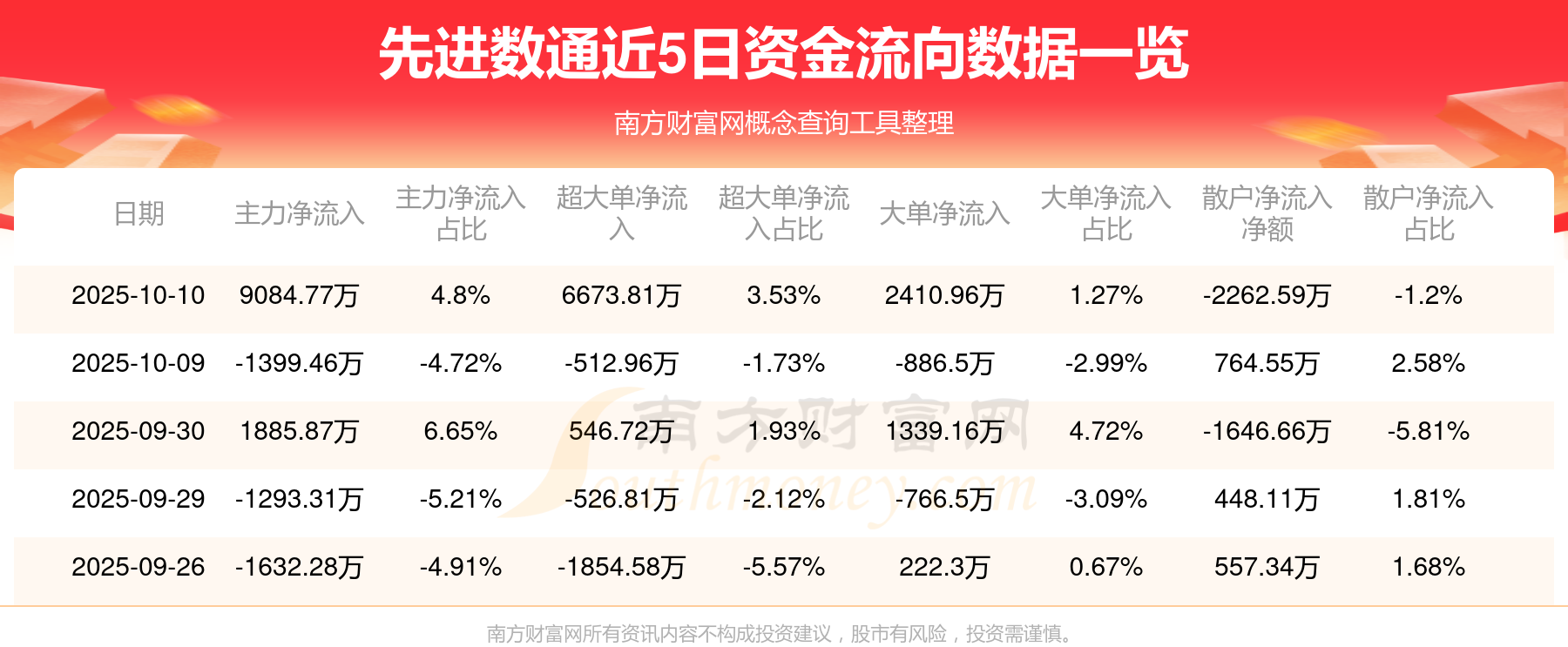 10月10日該股主力凈流入9084.77萬(wàn)元,超大單凈流入6673.81萬(wàn)元,大單凈流入2410.96萬(wàn)元,中單凈流出6822.18萬(wàn)元,散戶凈流出2262.59萬(wàn)元。