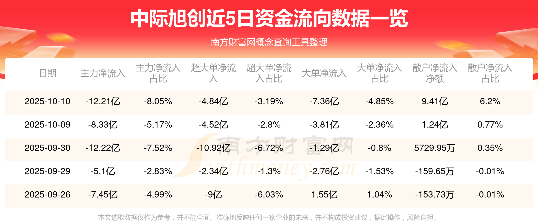 10月10日該股主力凈流出12.21億元,超大單凈流出4.84億元,大單凈流出7.36億元,中單凈流入2.8億元,散戶凈流入9.41億元。