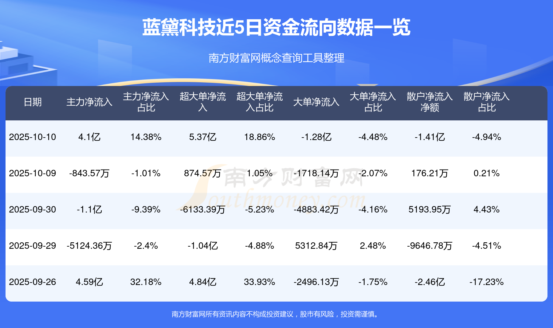 10月10日消息,資金凈流入4.1億元,超大單資金凈流入5.37億元,成交金額28.5億元。