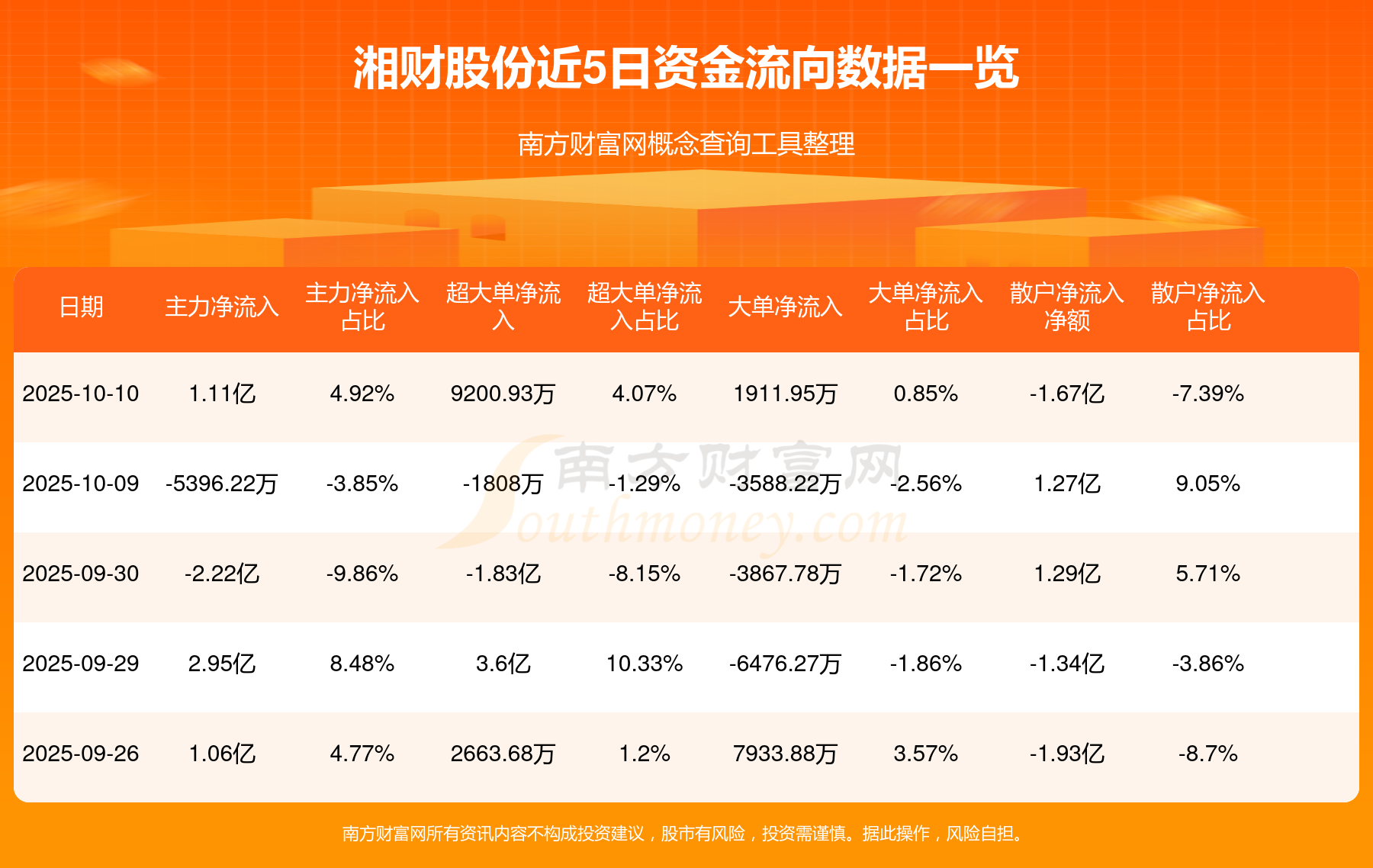 近5日資金流向一覽見下表: