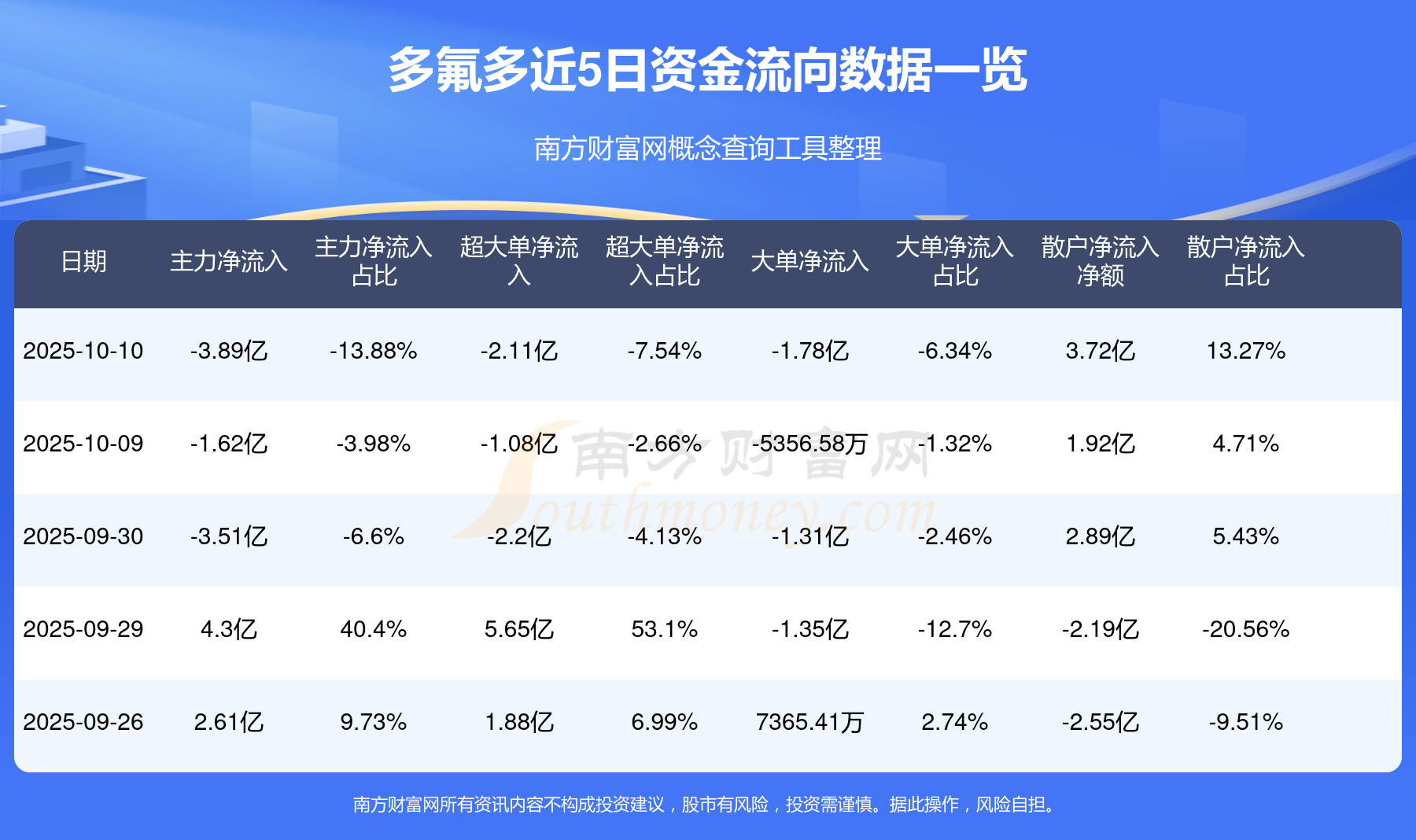 近5日資金流向一覽見下表: