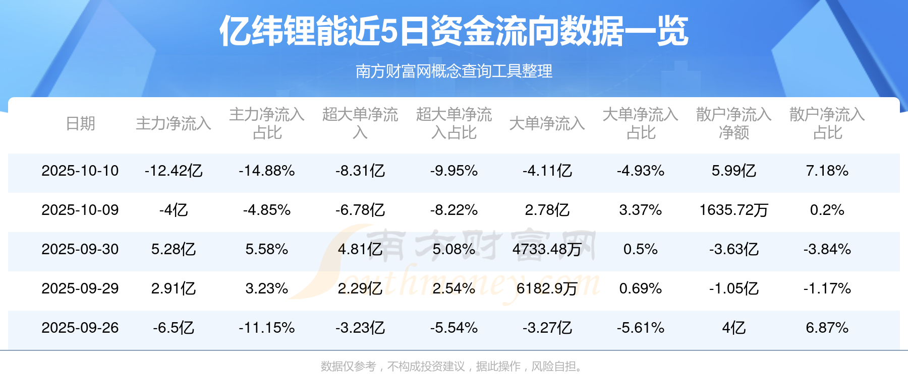 截止10月10日下午三點(diǎn)收盤億緯鋰能(300014)跌10.96%,報(bào)80.380元/股,3日內(nèi)股價(jià)下跌13.21%,換手率5.42%,成交額83.49億元。