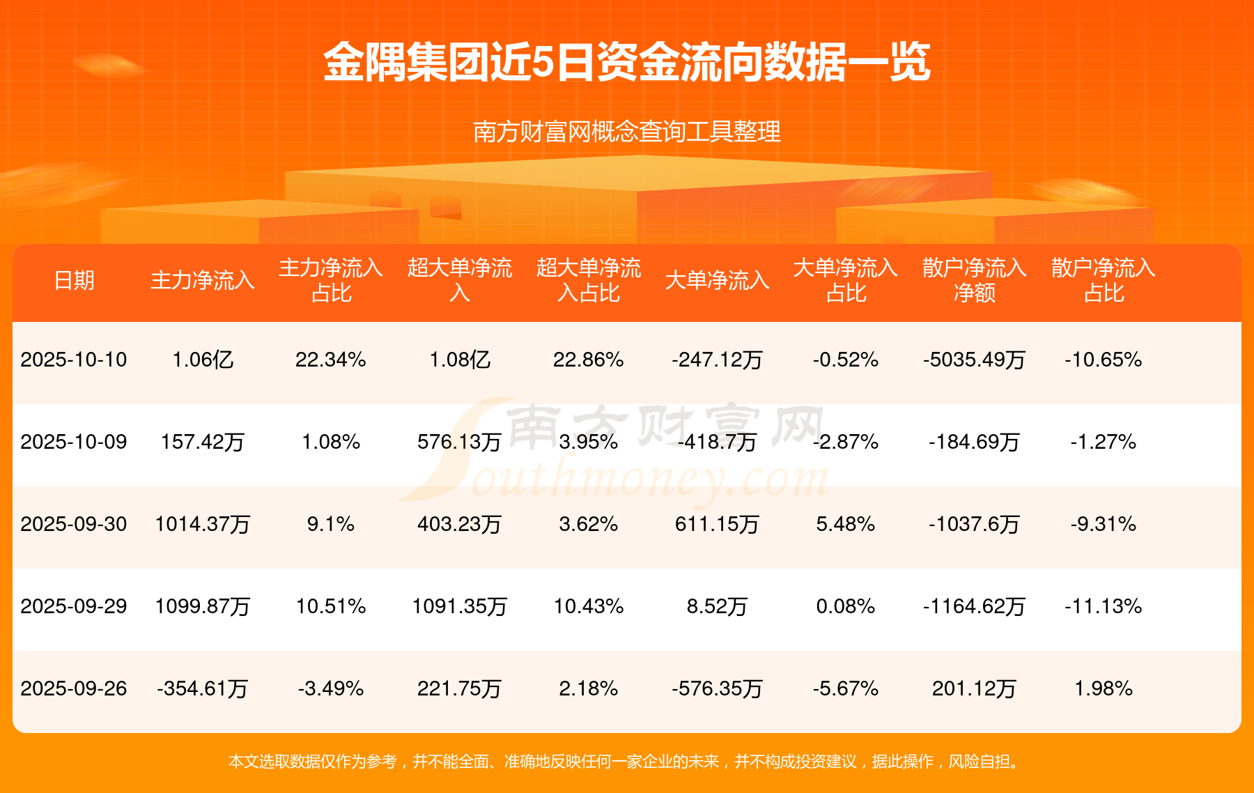 10月10日消息,資金凈流入1.06億元,超大單資金凈流入1.08億元,成交金額4.73億元。