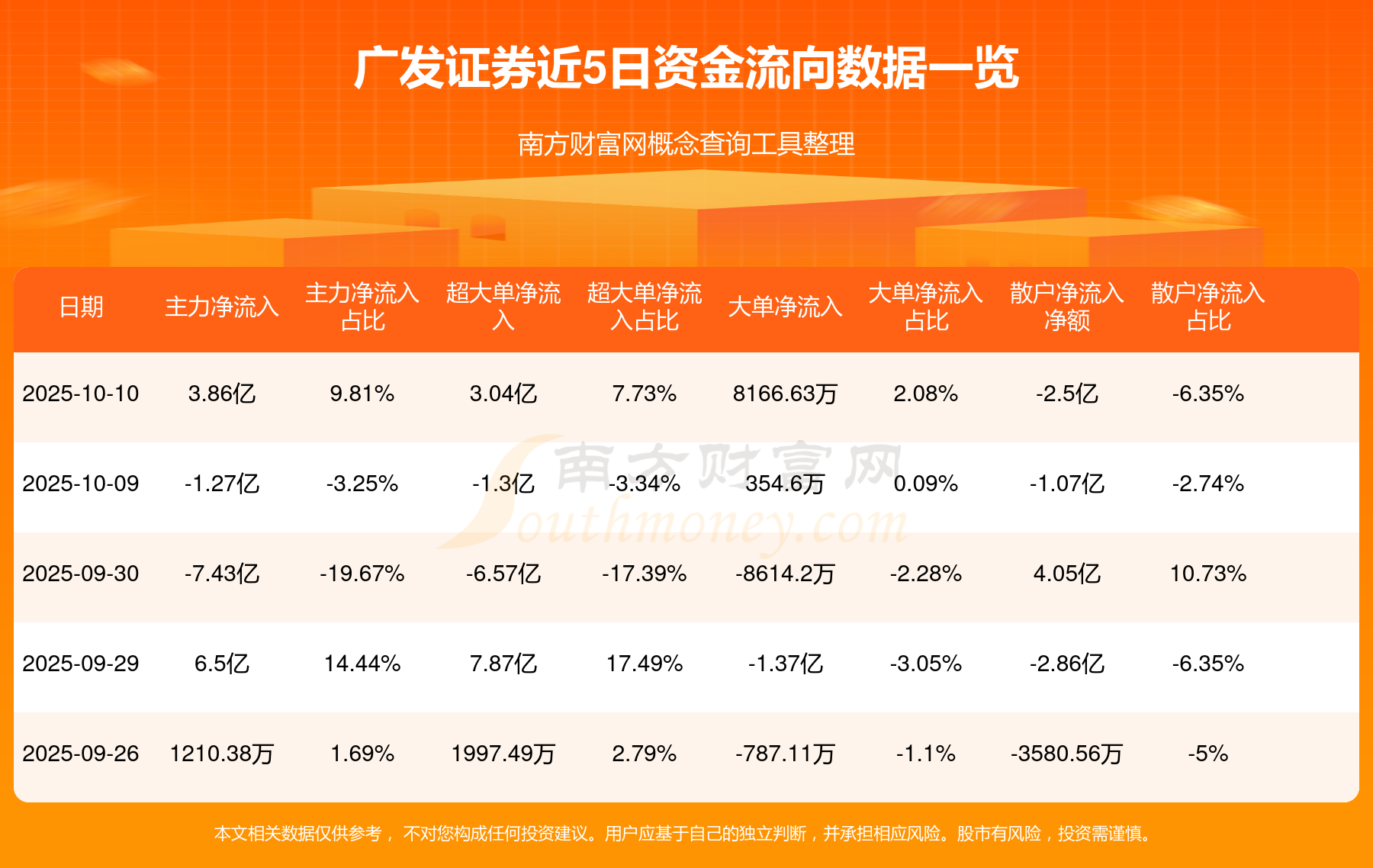 10月10日消息,廣發(fā)證券10月10日主力資金凈流入3.86億元,超大單資金凈流入3.04億元,大單資金凈流入8166.63萬元,散戶資金凈流出2.5億元。