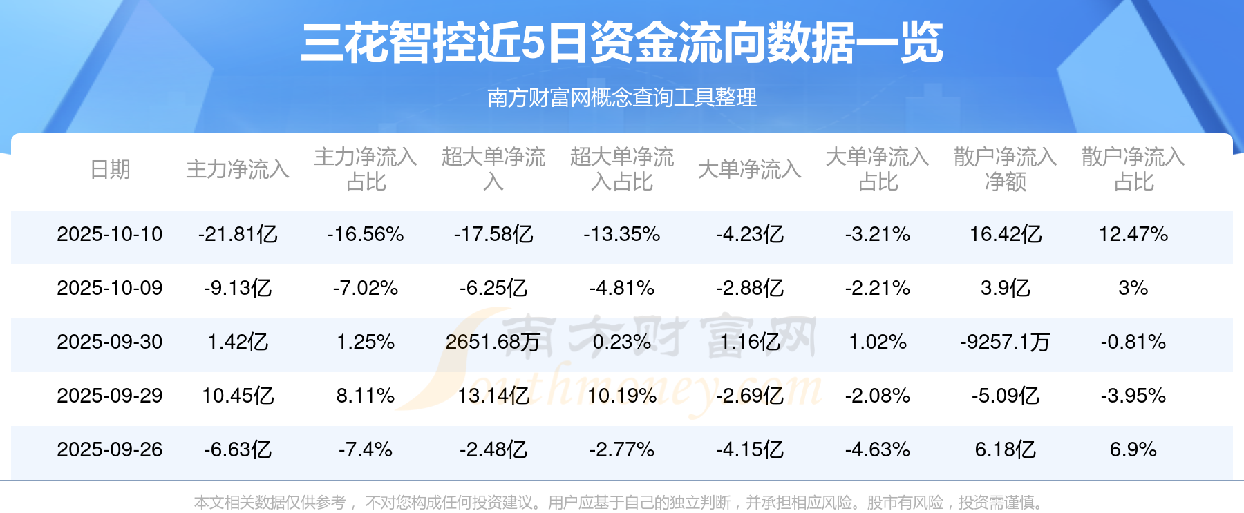10月10日消息,三花智控主力凈流出21.81億元,超大單凈流出17.58億元,散戶凈流入16.42億元。