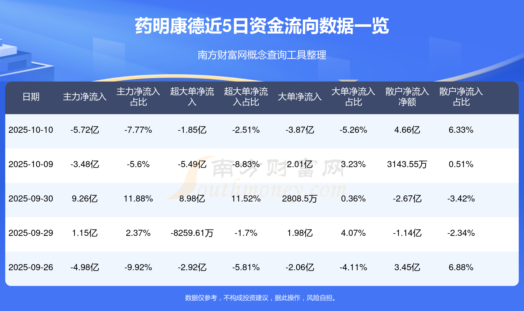 10月10日消息,藥明康德主力凈流出5.72億元,超大單凈流出1.85億元,散戶凈流入4.66億元。