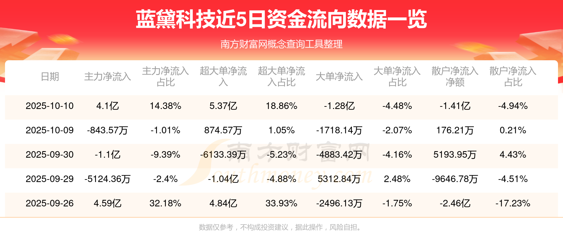 10月10日資金凈流入4.1億元,超大單凈流入5.37億元,換手率31.07%,成交金額28.5億元。