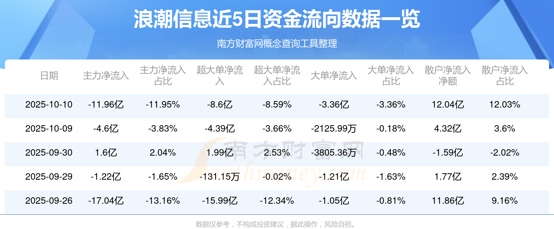 10月10日消息,浪潮信息資金凈流出11.96億元,超大單資金凈流出8.6億元,換手率9.54%,成交金額100.12億元。