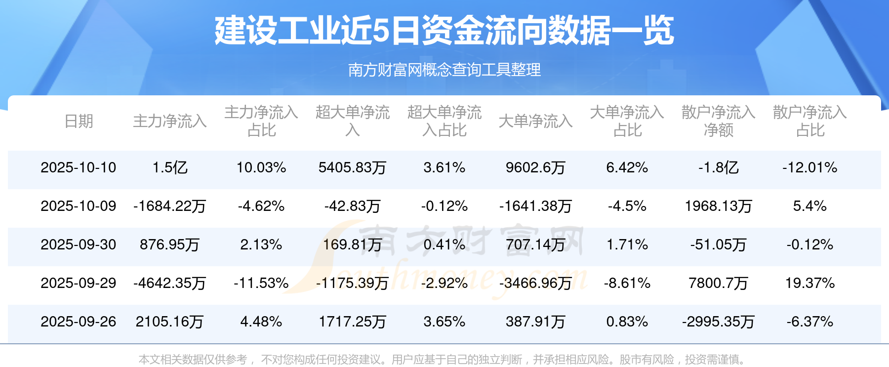 10月9日收盤消息,建設工業(yè)今年來漲幅上漲26.15%,最新報31.510元,成交額14.96億元。