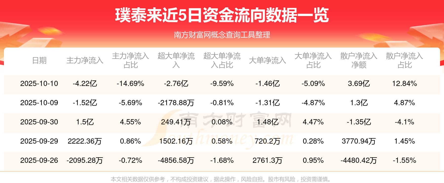 10月10日消息,資金凈流出4.22億元,超大單凈流出2.76億元,成交金額28.72億元。