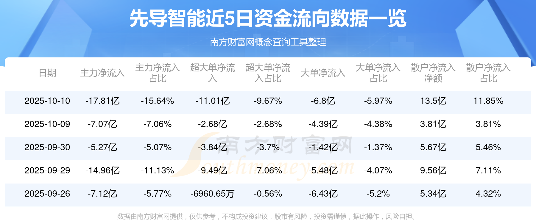 10月10日消息,先導智能資金凈流出17.81億元,超大單凈流出11.01億元,換手率12.92%,成交金額113.87億元。