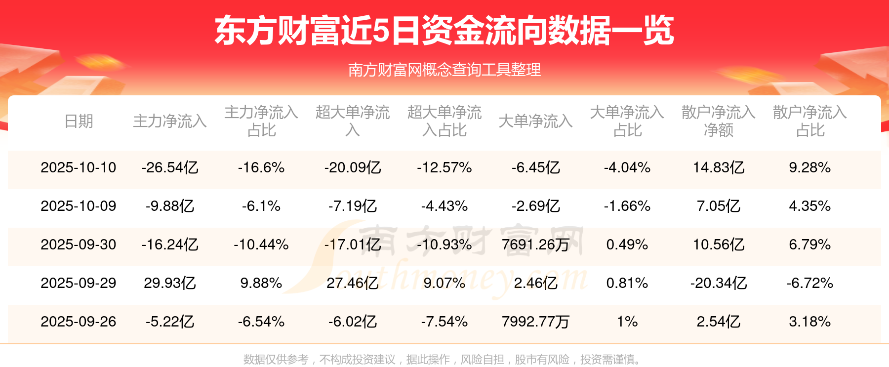 10月10日消息,東方財富10月10日主力資金凈流出26.54億元,超大單資金凈流出20.09億元,大單資金凈流出6.45億元,散戶資金凈流入14.83億元。