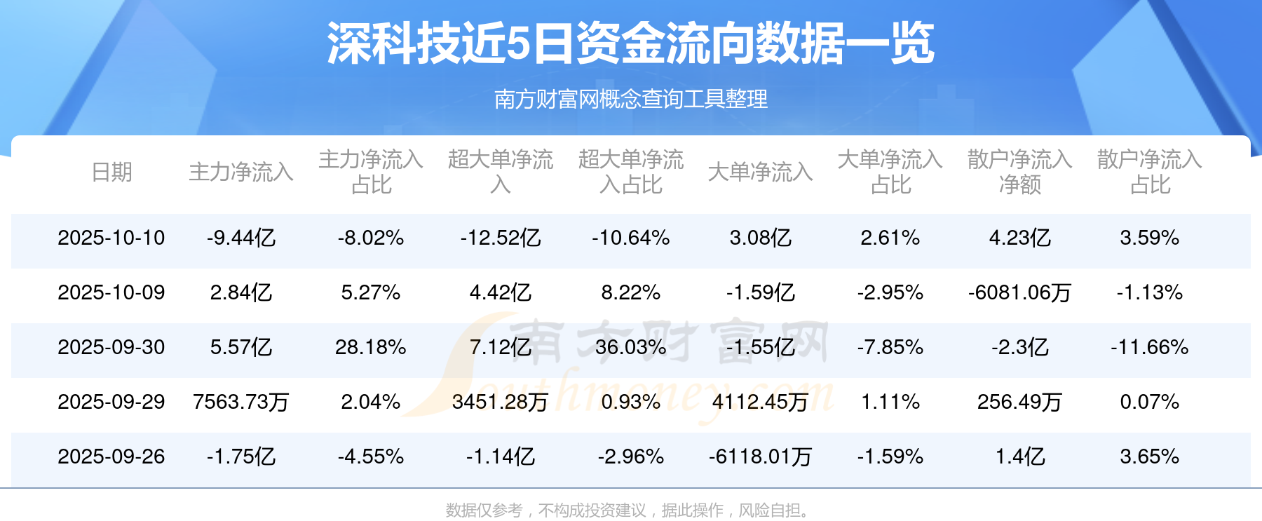 10月10日消息,深科技資金凈流出9.44億元,超大單凈流出12.52億元,換手率24.63%,成交金額117.7億元。