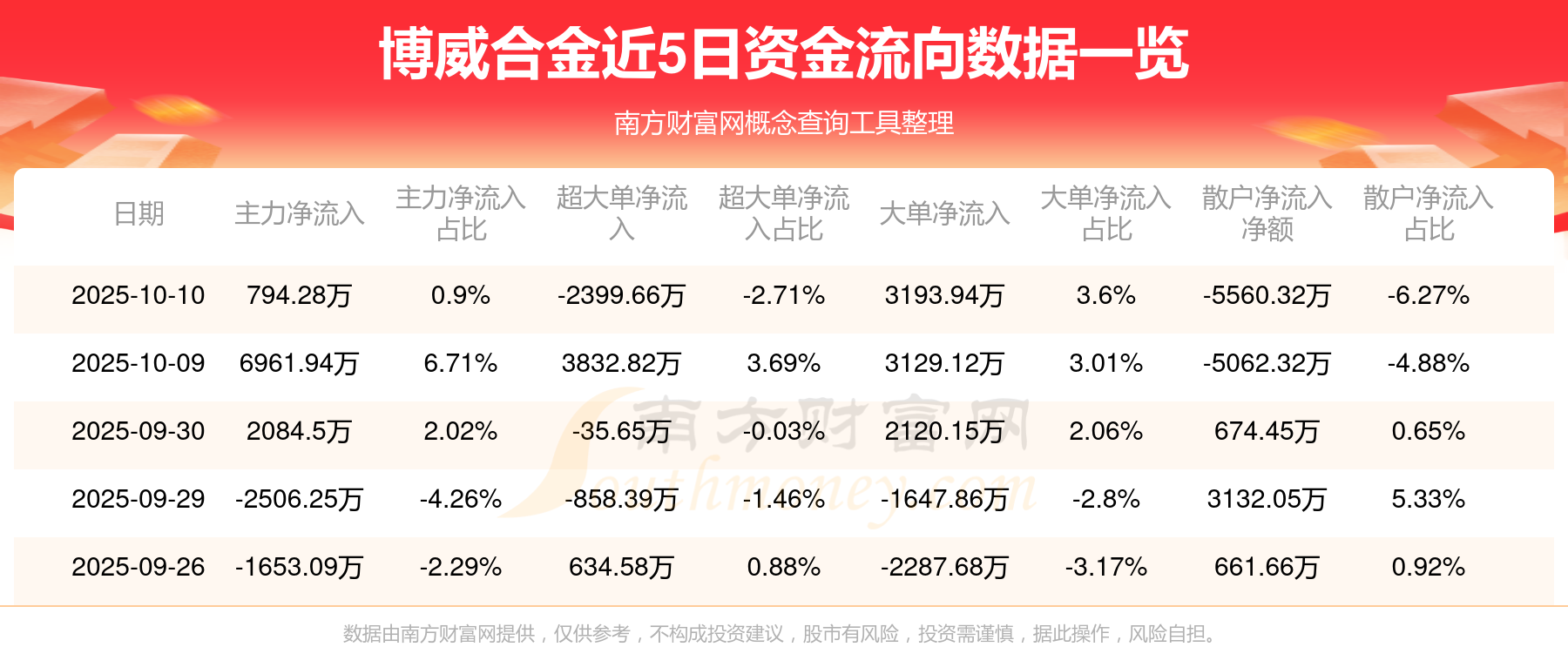 近5日資金流向一覽見下表: