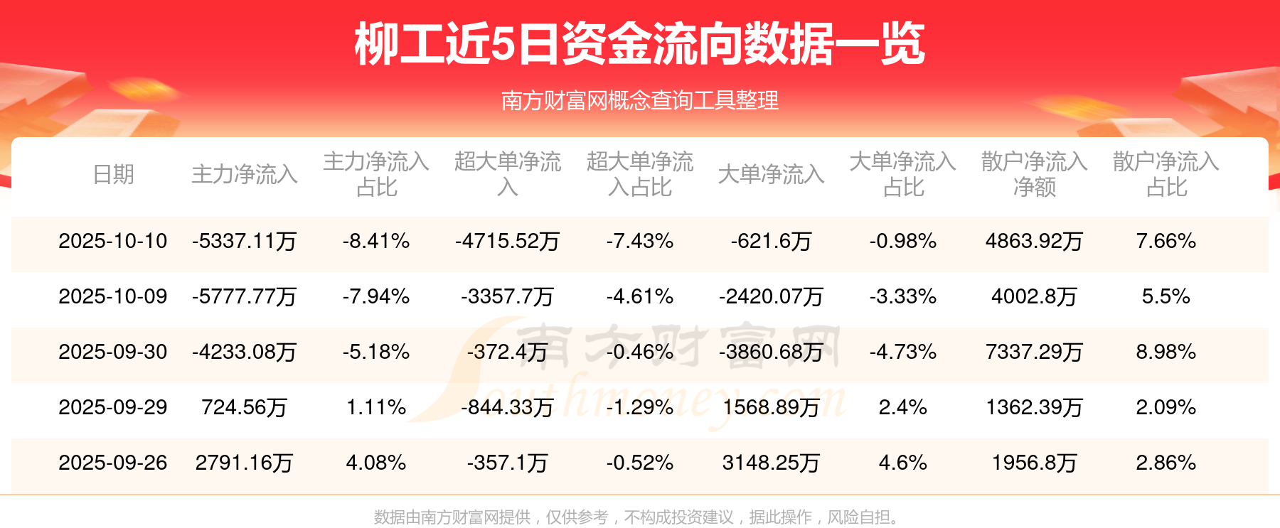 10月10日消息,柳工資金凈流出5337.11萬元,超大單凈流出4715.52萬元,換手率2.81%,成交金額6.35億元。