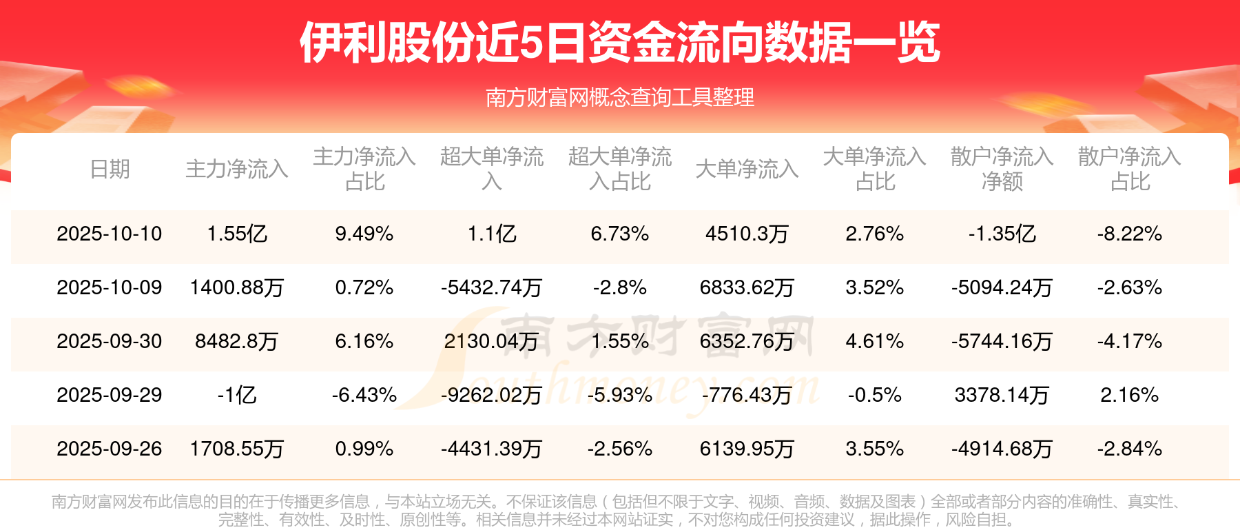 10月10日該股主力凈流入1.55億元,超大單凈流入1.1億元,大單凈流入4510.3萬元,中單凈流出2082.62萬元,散戶凈流出1.35億元。