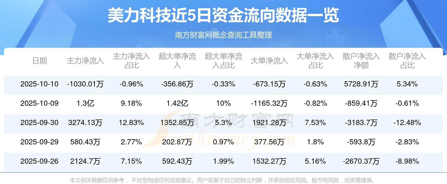 10月10日消息,美力科技10月10日主力資金凈流出1030.01萬元,超大單資金凈流出356.86萬元,大單資金凈流出673.15萬元,散戶資金凈流入5728.91萬元。