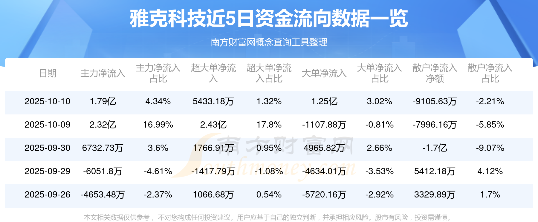 10月10日消息,雅克科技資金凈流入1.79億元,超大單凈流入5433.18萬(wàn)元,換手率15.32%,成交金額41.22億元。